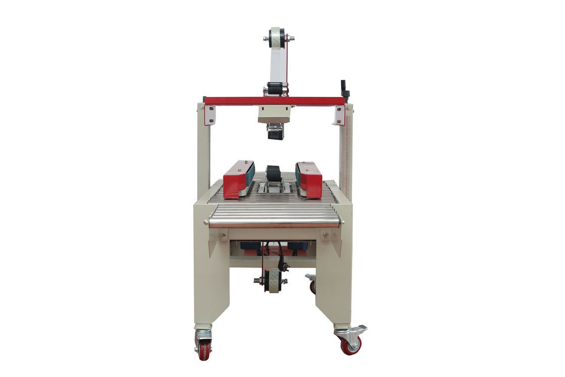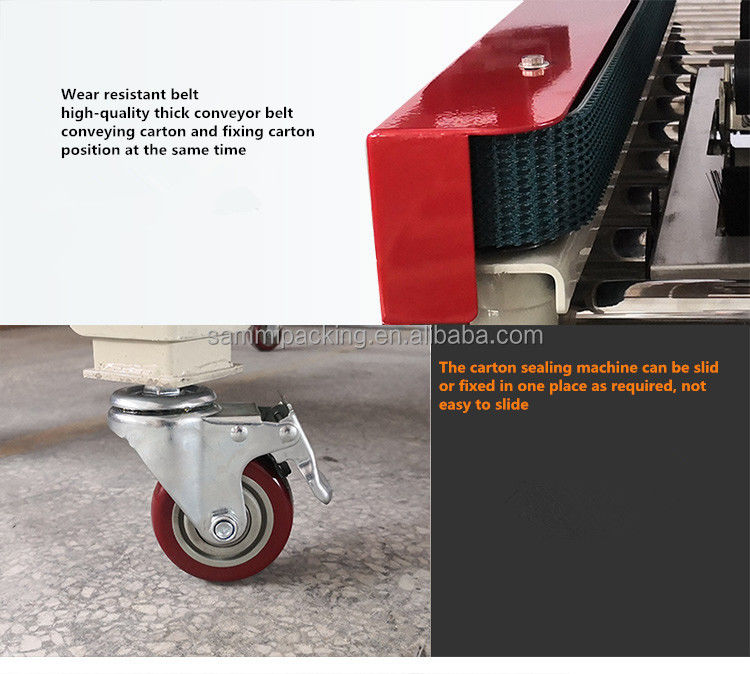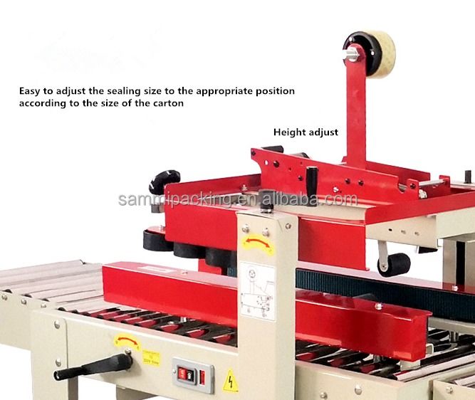 2. Отрегулируйте высоту и ширину запечатывания вручную в соответствии с размером картонной коробки, затем поместите картонную коробку на рабочий стол, и коробка будет перемещаться и автоматически запечатываться лентой одновременно.