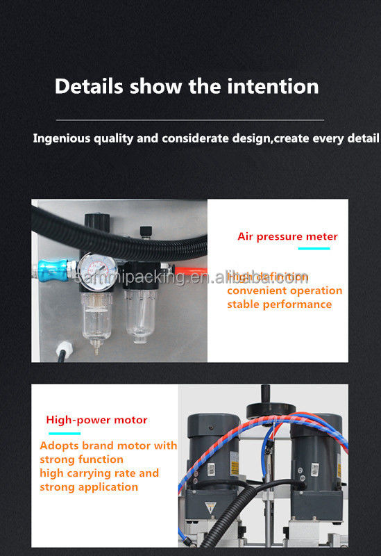 Подходит для закрутки крышки различных форм бутылок в пищевой промышленности, фармацевтической промышленности, повседневной химической промышленности, пестицидов и косметики и т.д.Его четыре регулируемых двигателей скорости используются соответственно для питания крышки, зажимание бутылок, доставка и закручивание крышек. Он характеризуется высоким уровнем автоматизации, выдающейся стабильностью, легкой регулировкой, отсутствием необходимости в запасных частях для замены типов бутылок или крышек,что можно сделать только путем корректировки.